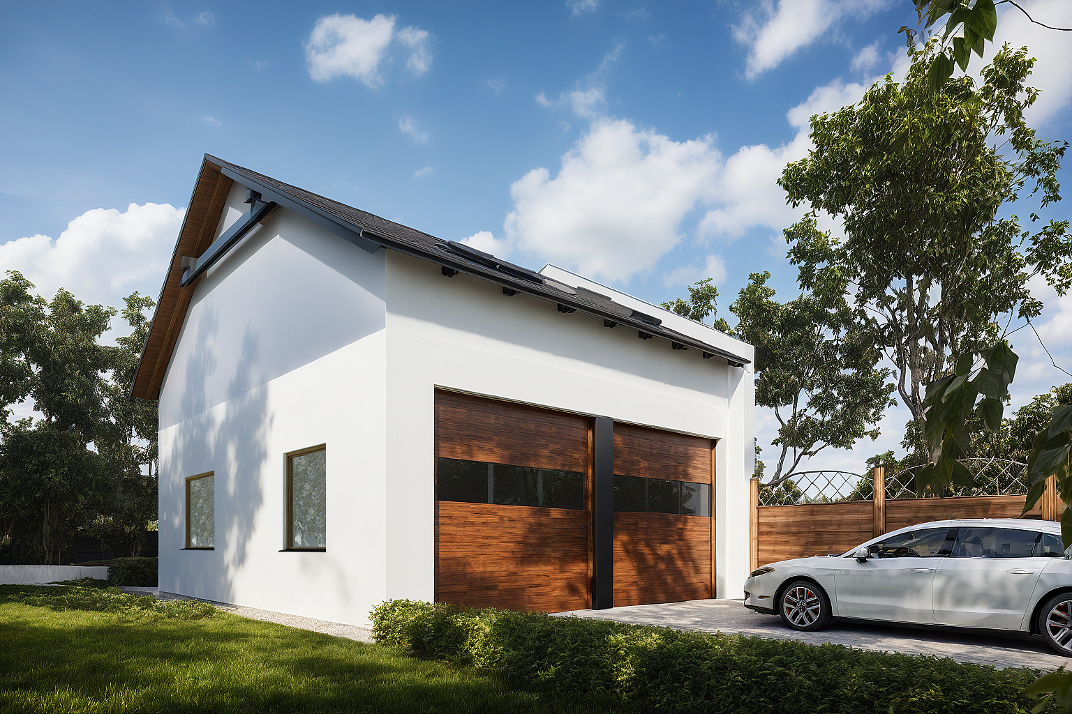 Projekt garażu trzystanowiskowego parterowego z poddaszem, niepodpiwniczonego, przeznaczonego dla samochodów dostawczych. Do projektu dołączone jest zestawienie: stali, więźby dachowej oraz stolarki drzwiowej i okiennej, jak również bezpłatna zgoda na dokonanie zmian.